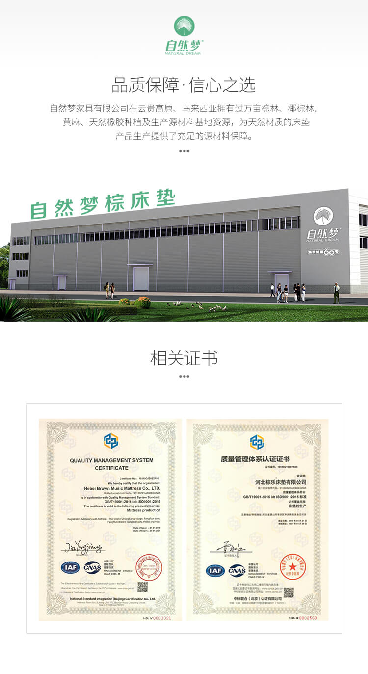 河北棕樂自然夢有限公司是一家生產銷售:山棕床墊、椰棕床墊的植物纖維彈性床墊企業,擁有自動化生產工藝、標準化廠房,專業技術人員層層把控生產環節,致力于為消費者打造強腰、護脊、易入睡的高品質產品!